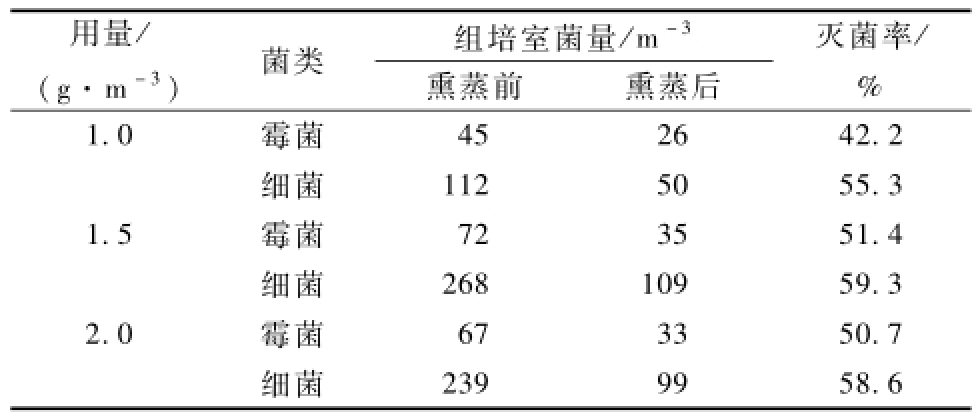 表1 艾叶不同用量熏蒸处理的灭菌效果