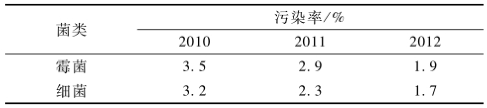 由表4可知,与2010年相比,2012年金线莲茄子视频成人在线观看苗细菌污染下降率为1.5百分点,霉菌污染下降率为1.6百分点。艾叶与苍术联合熏蒸法对金线莲茄子视频成人在线观看生产空气灭菌效果较佳,适用于金线莲茄子视频成人在线观看苗工厂化生产。
