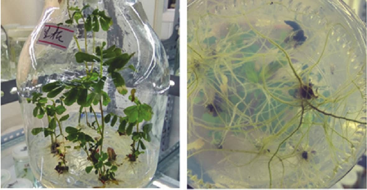 图1 添加IBA 0.5 mg·L-1的诱导苗长势及生根(25 d)