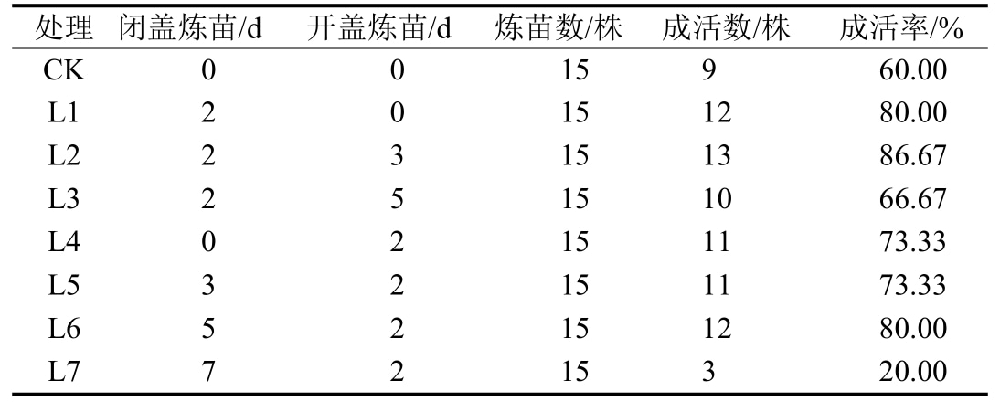 表5 不同炼苗时间对移栽成活率的影响