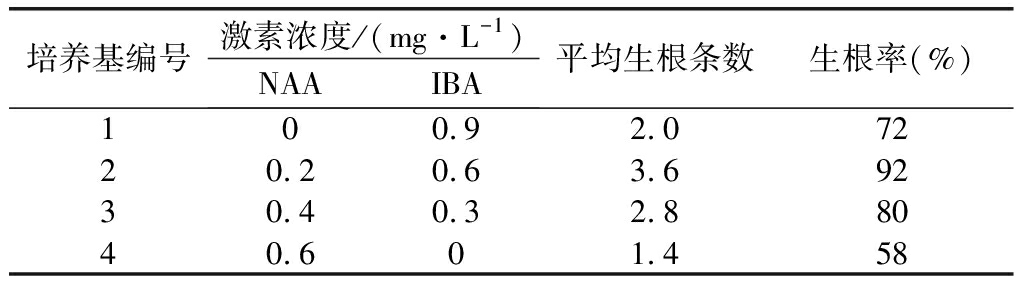 表3 生根培养基不同激素浓度配比表 mg·L-1