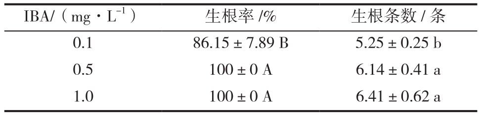 表3 IBA浓度对树莓“Polana”生根的影响