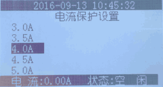 8.电流显示和电流保护设置功能:仪器液晶屏上有工作电流显示,同时可以设置电流值,当电流过大,超过设置值,仪器自动报警断电。